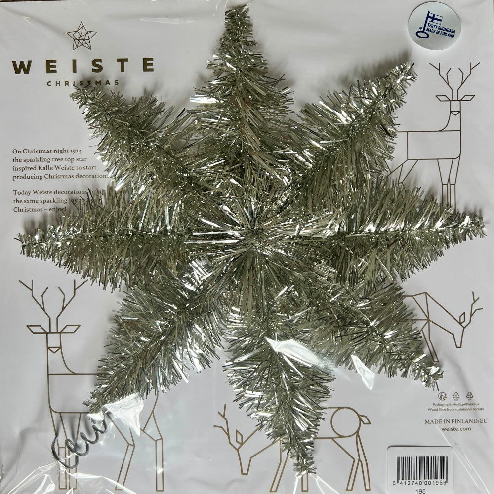 Weiste’s traditional light-weight tree-top star that will stay on the flimsiest Christmas trees.